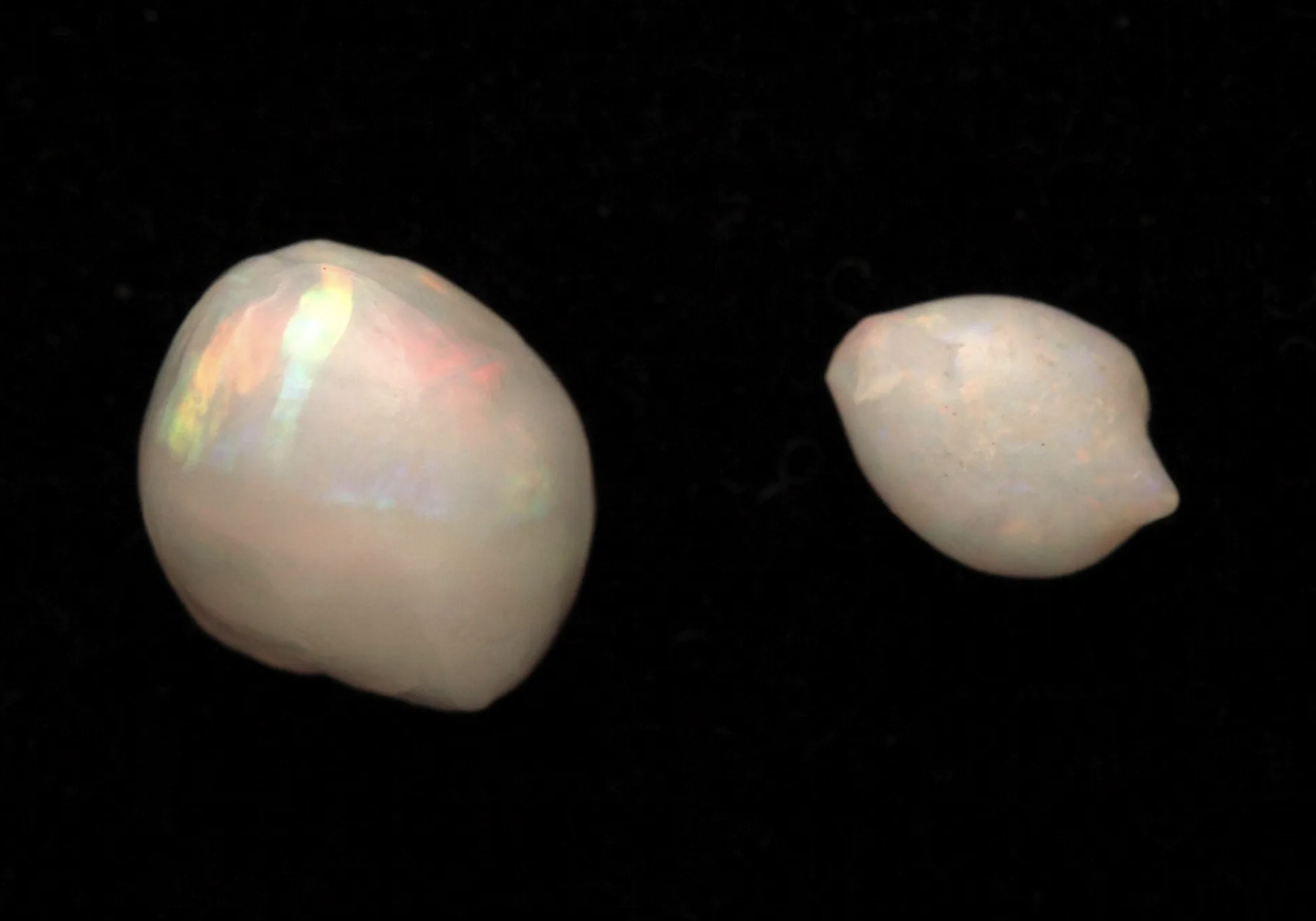 The miners, who were collecting smaller pieces of precious opal to sell to overseas buyers, plucked the duo of four millimetre in diametre pearls off of the conveyor belt. Almost immediately, they could tell from their rounded shape that they had happened upon something special, and the opalised pearls were locked away in Price and Burk’s private collection. While the miners were fairly certain about the specimen’s identity, they had difficulty getting the pearls authenticated. Since one had never been seen before, it was completely unknown if such a phenomena could even exist.